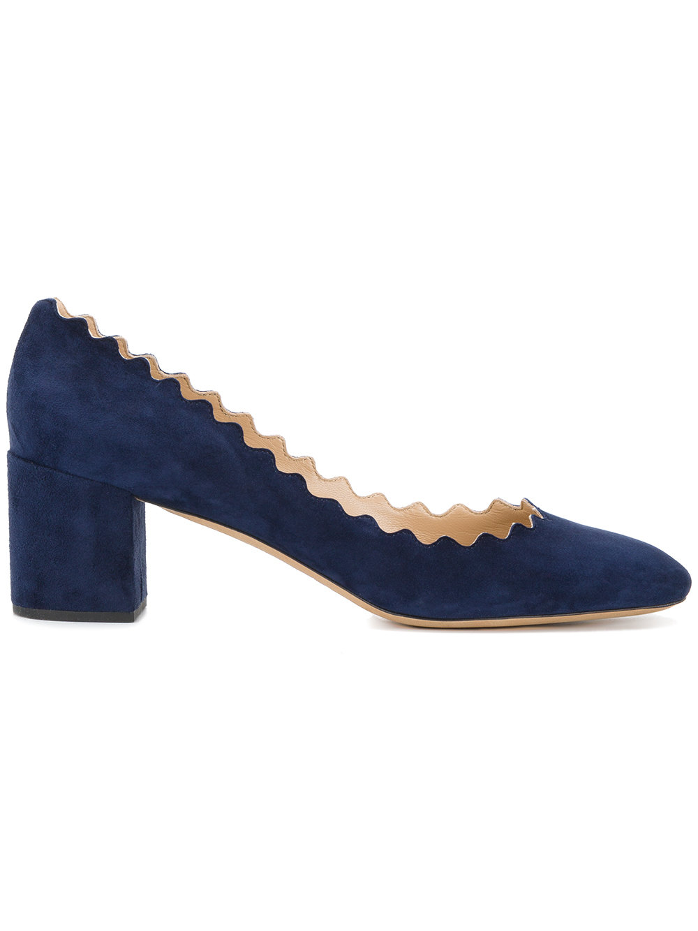 - Chloé (寇依) 蓝色 绒面皮 Lauren扇贝形边高跟鞋。