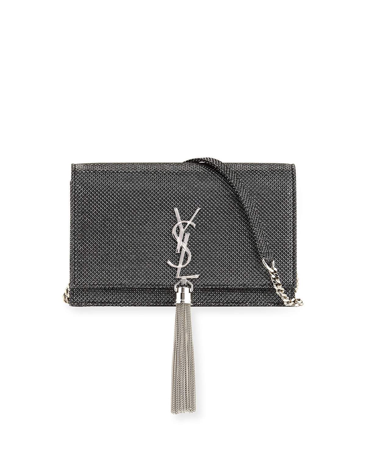 Saint Laurent Kate Monogram Tassel Sparkle Wallet on a Chain, Black/Gray