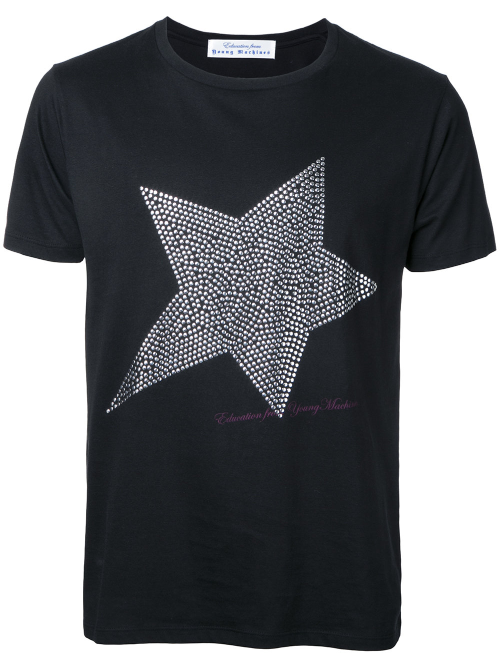 - Black cotton studded star T-shirt from Education from Youngmachines.