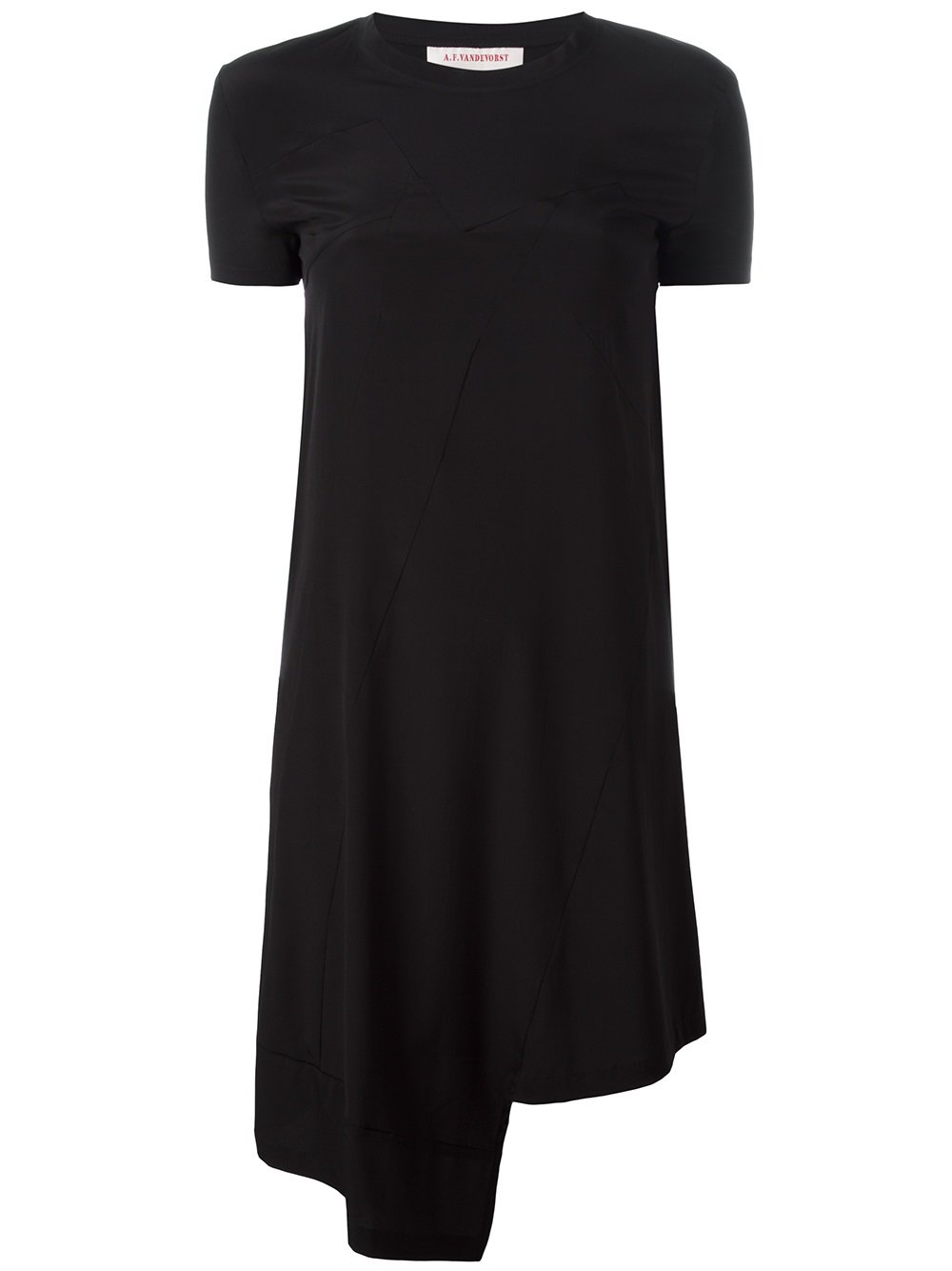 - A.F.Vandevorst 黑色 丝绸混纺 'Fonder短袖连衣裙。