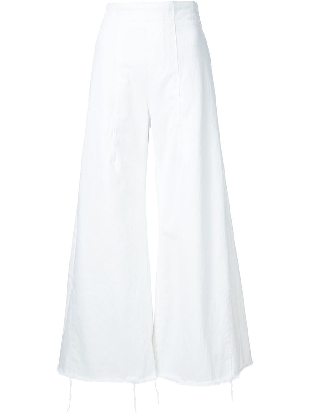 - Chloé 白色 全棉 喇叭牛仔裤。 低腰, 隐藏式开合, 不折边下摆。
