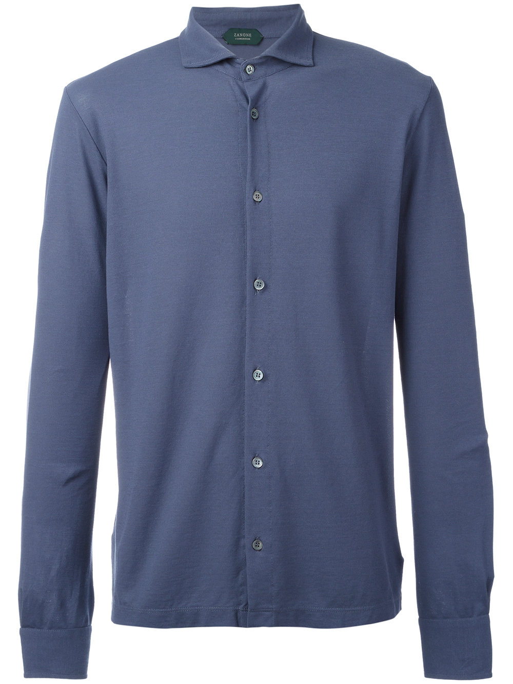 - Zanone 灰蓝色 全棉 针织衬衫。