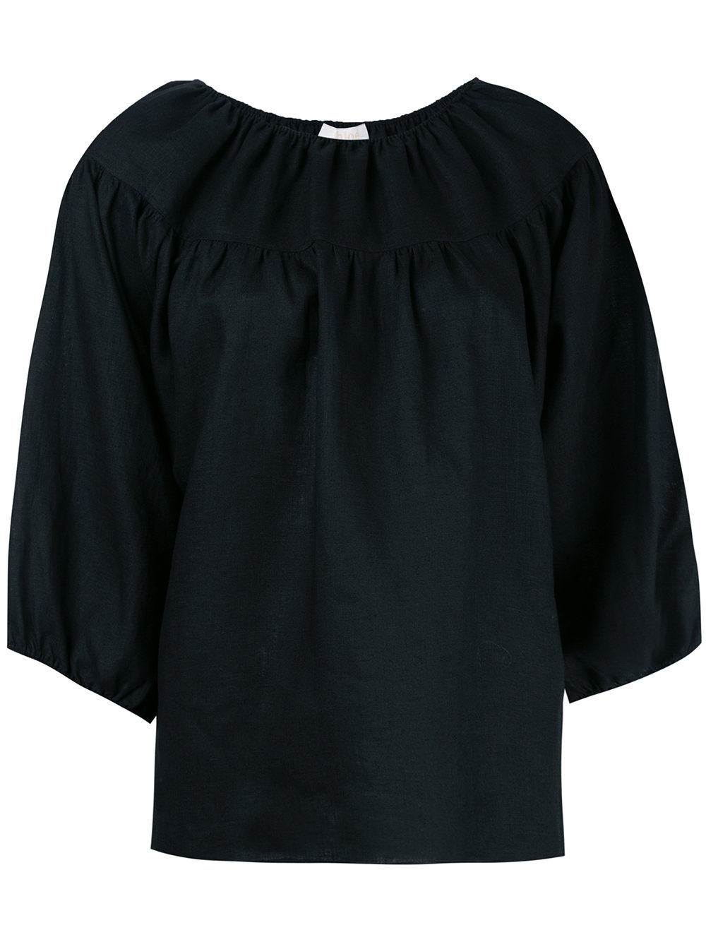 - Black linen flax 3/4 sleeve peasant blouse from Chloé featuring a round neck, elasticated cuffs, a gathered design and an oversized fit.