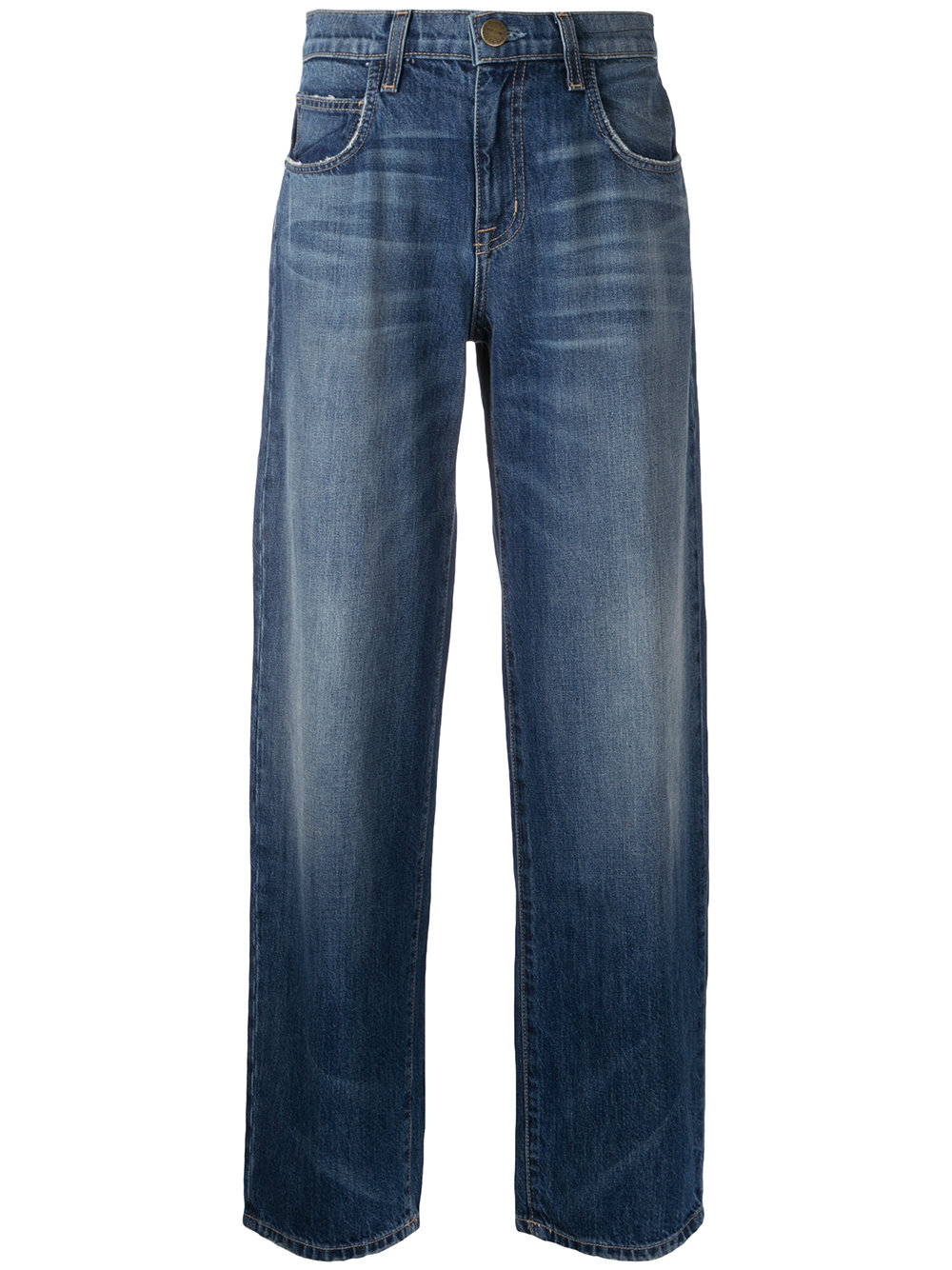 - Current/Elliott 蓝色 棉质混纺 直筒牛仔裤。