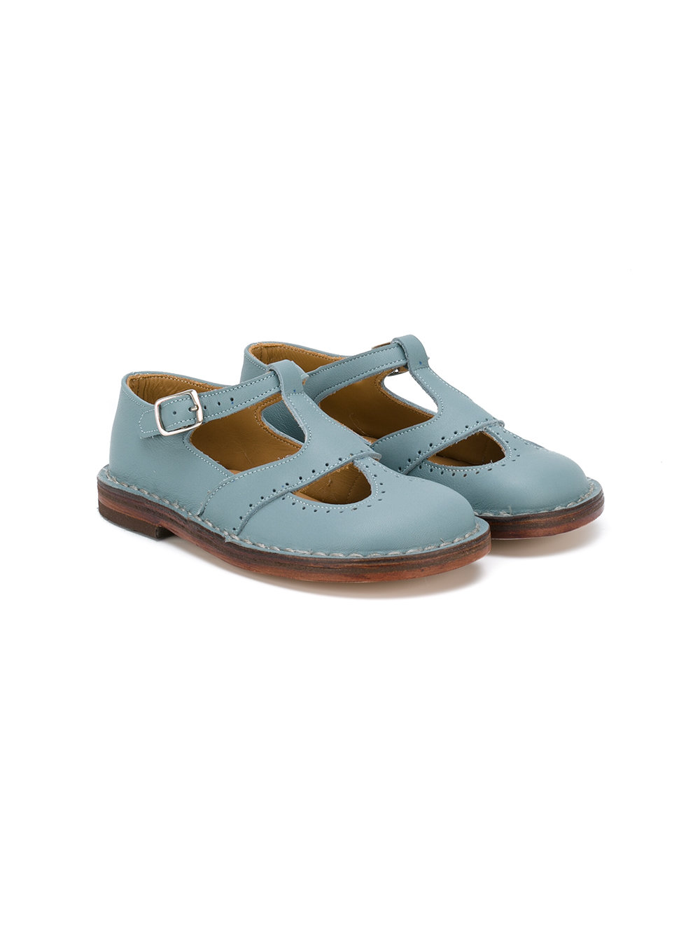 - Duck egg blue leather and calfskin T-bar sandals from Pèpè.