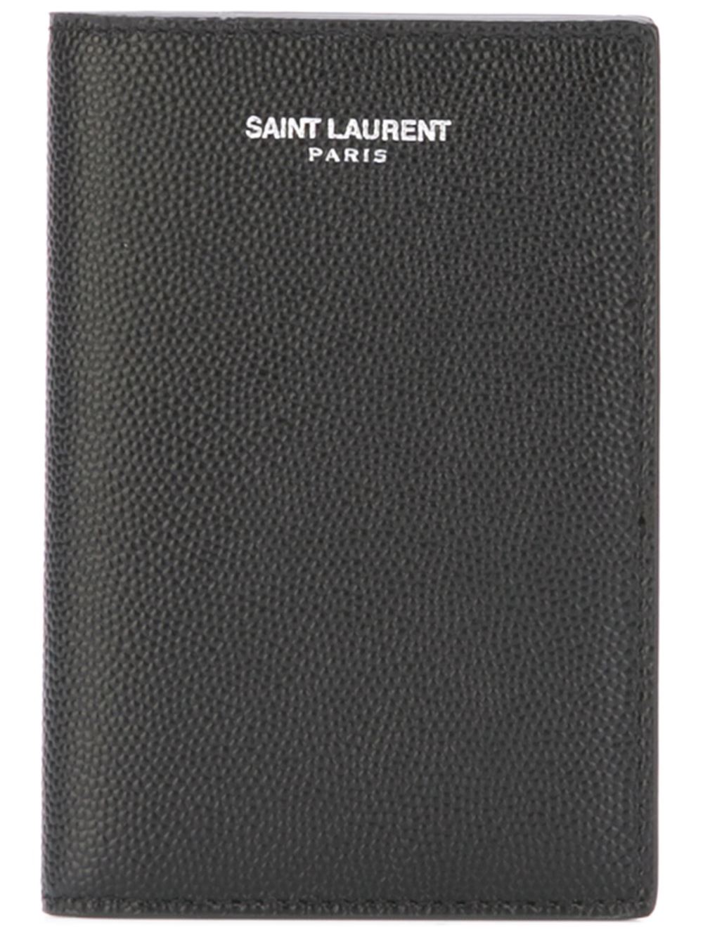- Saint Laurent 黑色 真皮 'Paris'卡夹。 顶部饰有翻盖, 正面饰有浮雕品牌标记, 粗质感皮革, 内置口袋, 内置多个卡槽, 内置浮雕标记。