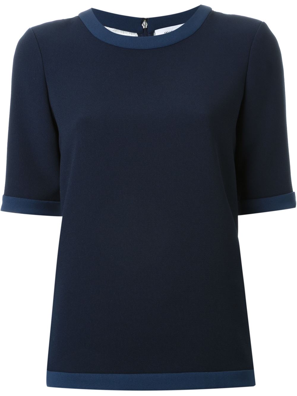 - PRABAL GURUNG 海军蓝与白色 全棉 刺绣T恤。