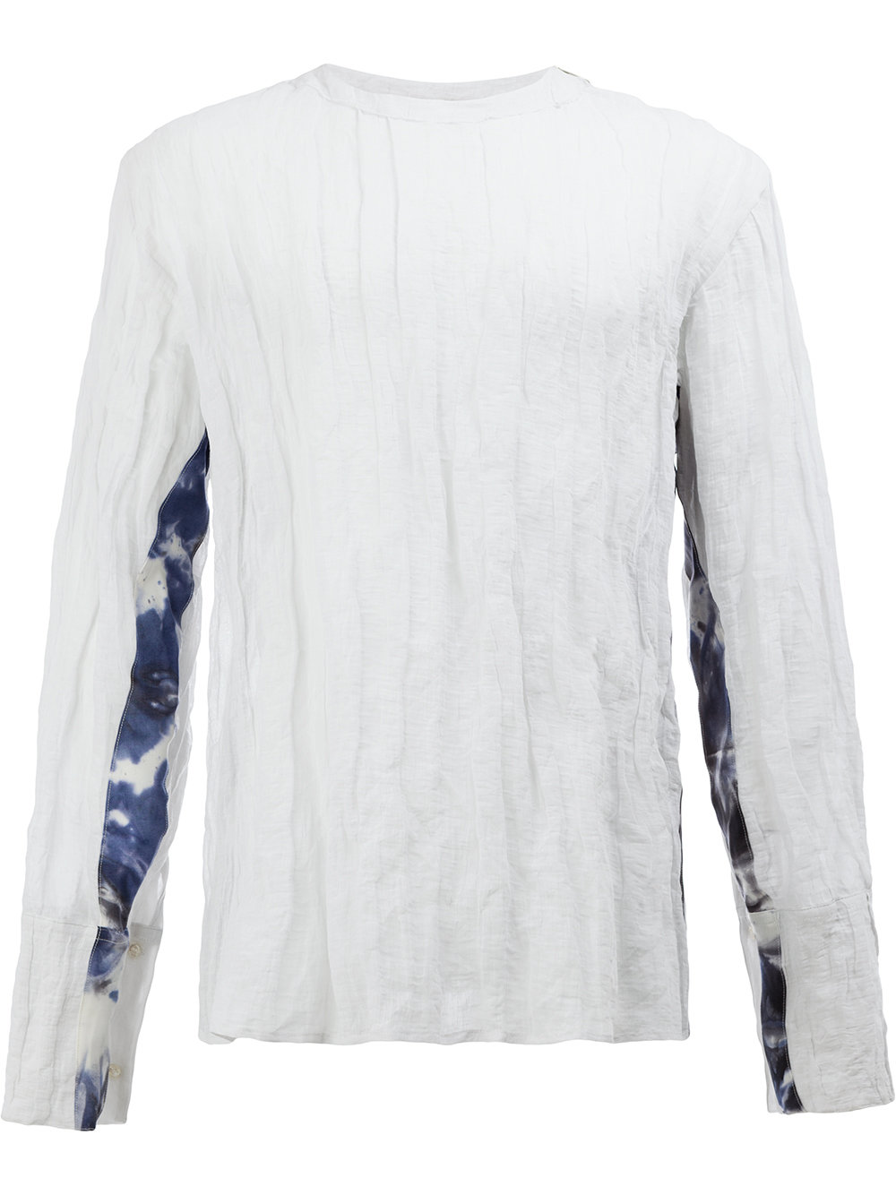 - Yang Li 米白色 棉质混纺 手臂细节半透明T恤。请注意,这件商品为缩皱设计。