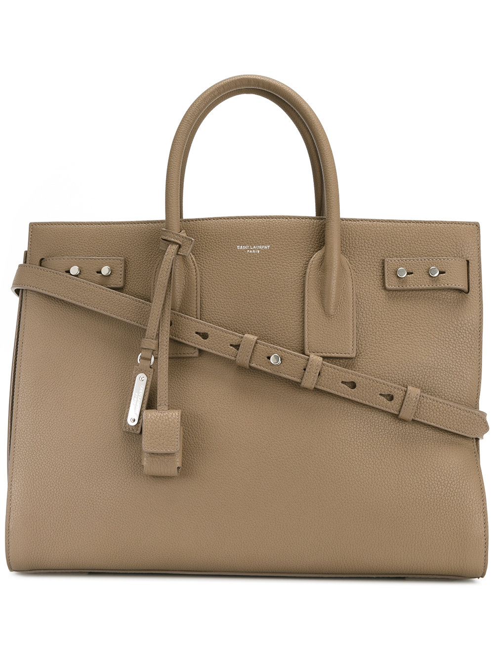 - Saint Laurent (圣罗兰) 米色 牛皮 Sac du Jour小号手提包。 可拆卸可调肩带, 挂锁吊饰, 内置拉链夹层, 正面饰有浮雕品牌标记, 银色五金配件。