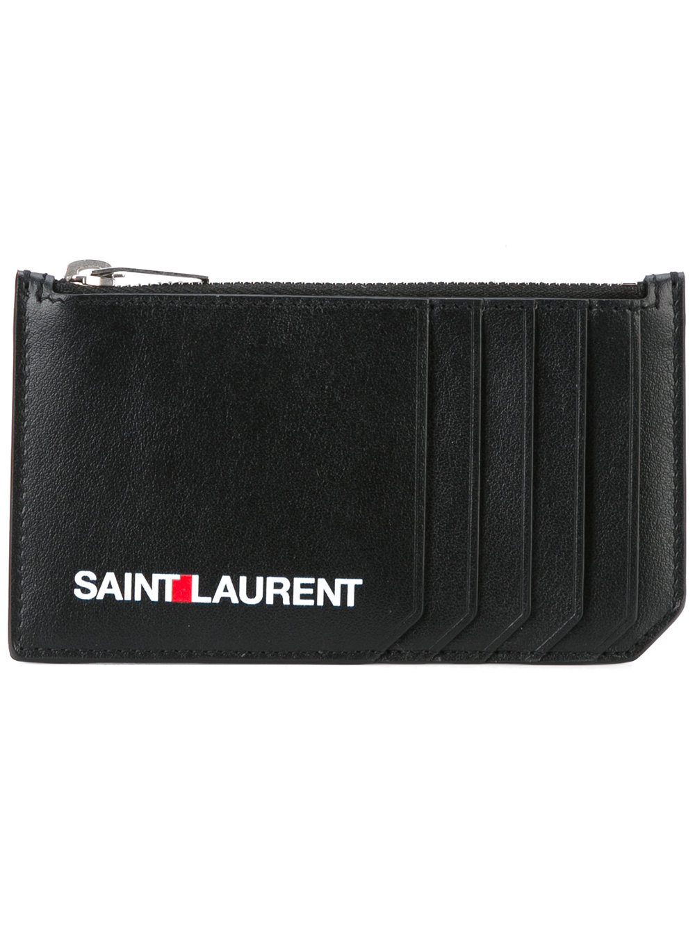- Black, white and red leather Saint Laurent print zip pouch from Saint Laurent featuring a printed logo to the front, multiple card slots, a top zip closure, silver-tone hardware and an internal logo stamp.