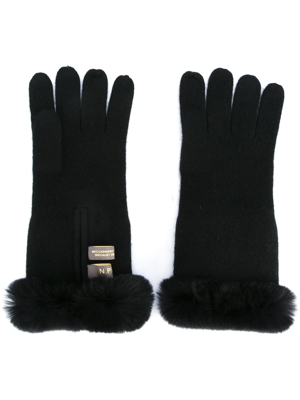 - Black navy cashmere fur trim gloves from N.Peal.