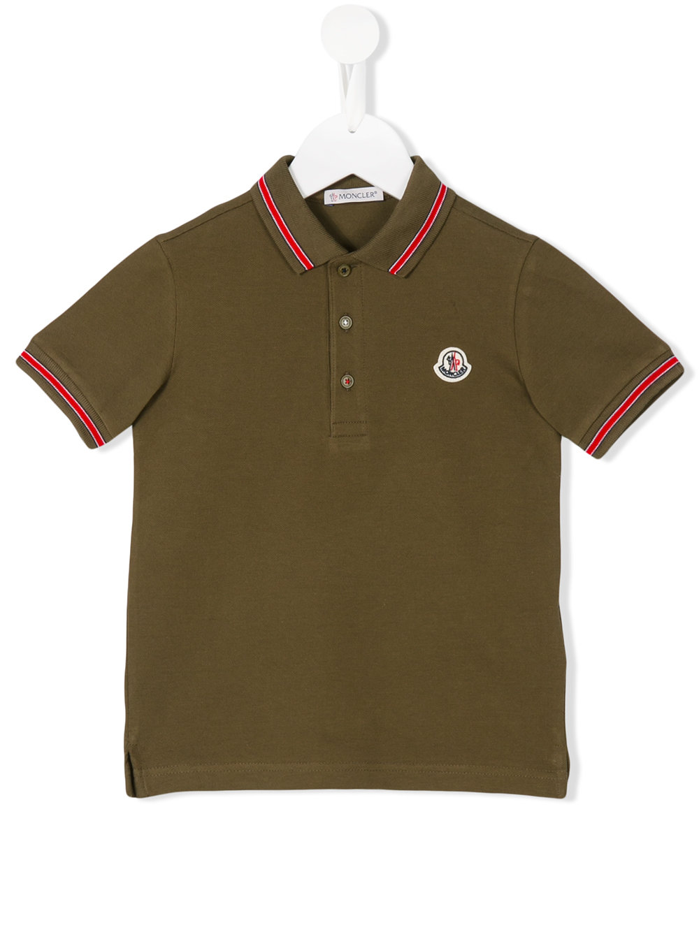 - Green cotton classic logo polo shirt from Moncler Kids featuring a classic polo collar, a front button placket, an embroidered designer logo to the chest and short sleeves.