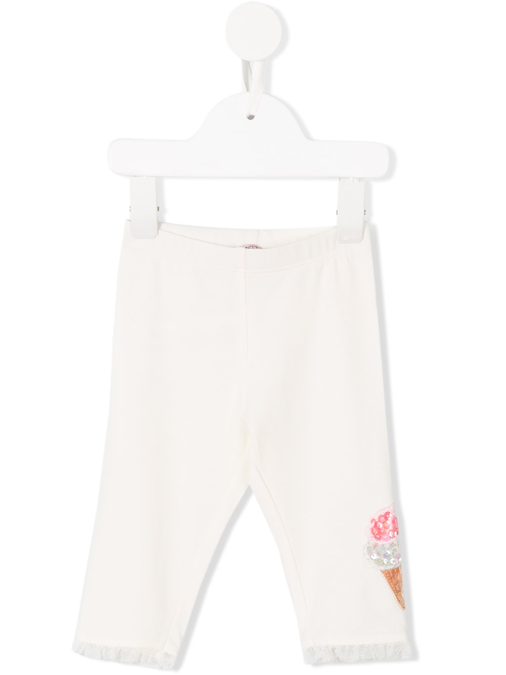 - White cotton blend sequin ice-cream detail leggings from Monnalisa featuring an elasticated waistband, sequin embroidery and a ruffled design.