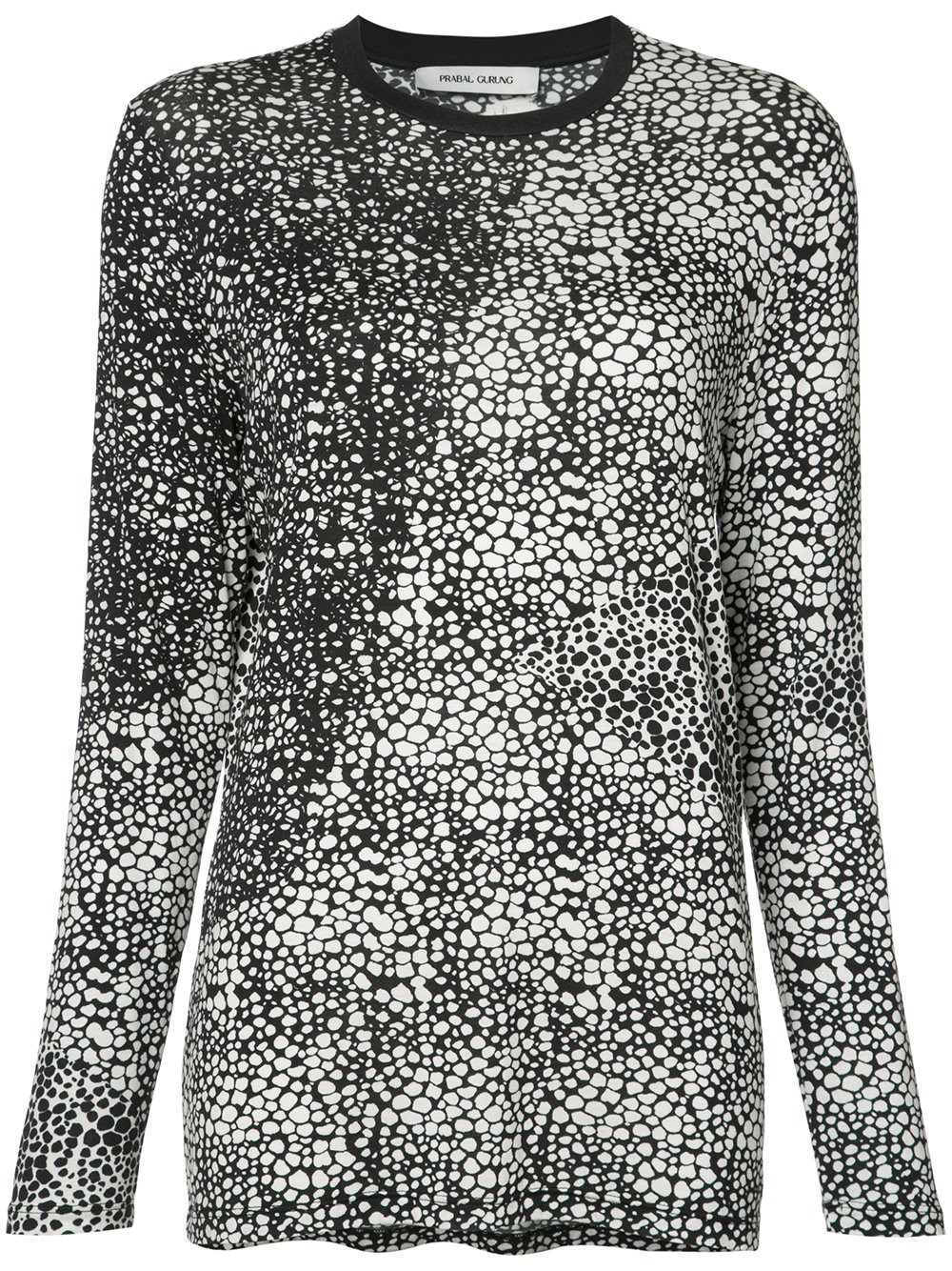 - Black longsleeved printed T-shirt from Prabal Gurung.