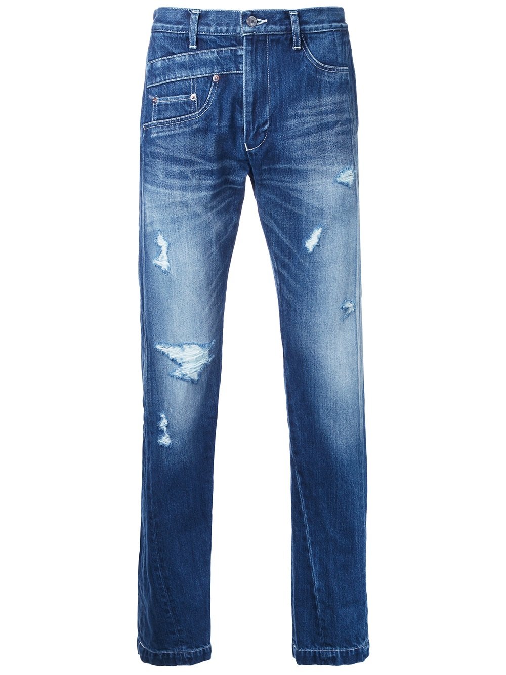 - Miharayasuhiro 靛蓝色 全棉 直筒牛仔裤。