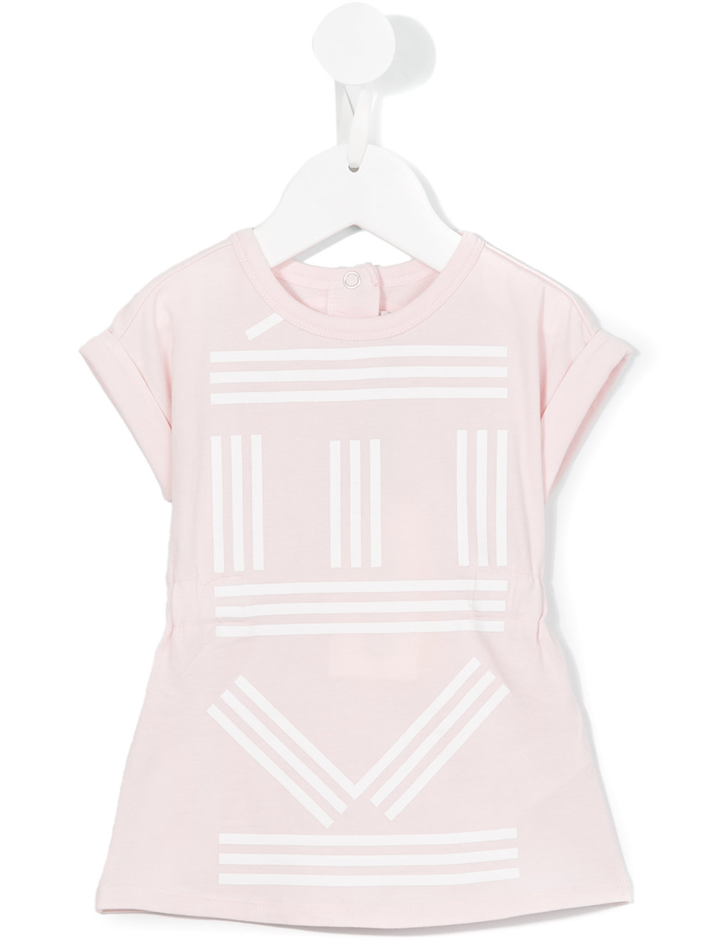 - Cool kids will love the new Kenzo Kids’ collection. Expect lively prints and signature vibrant-hued dresses, T-shirts and sweats. This pink stretch cotton logo print dress features a round neck, short sleeves and a button fastening.