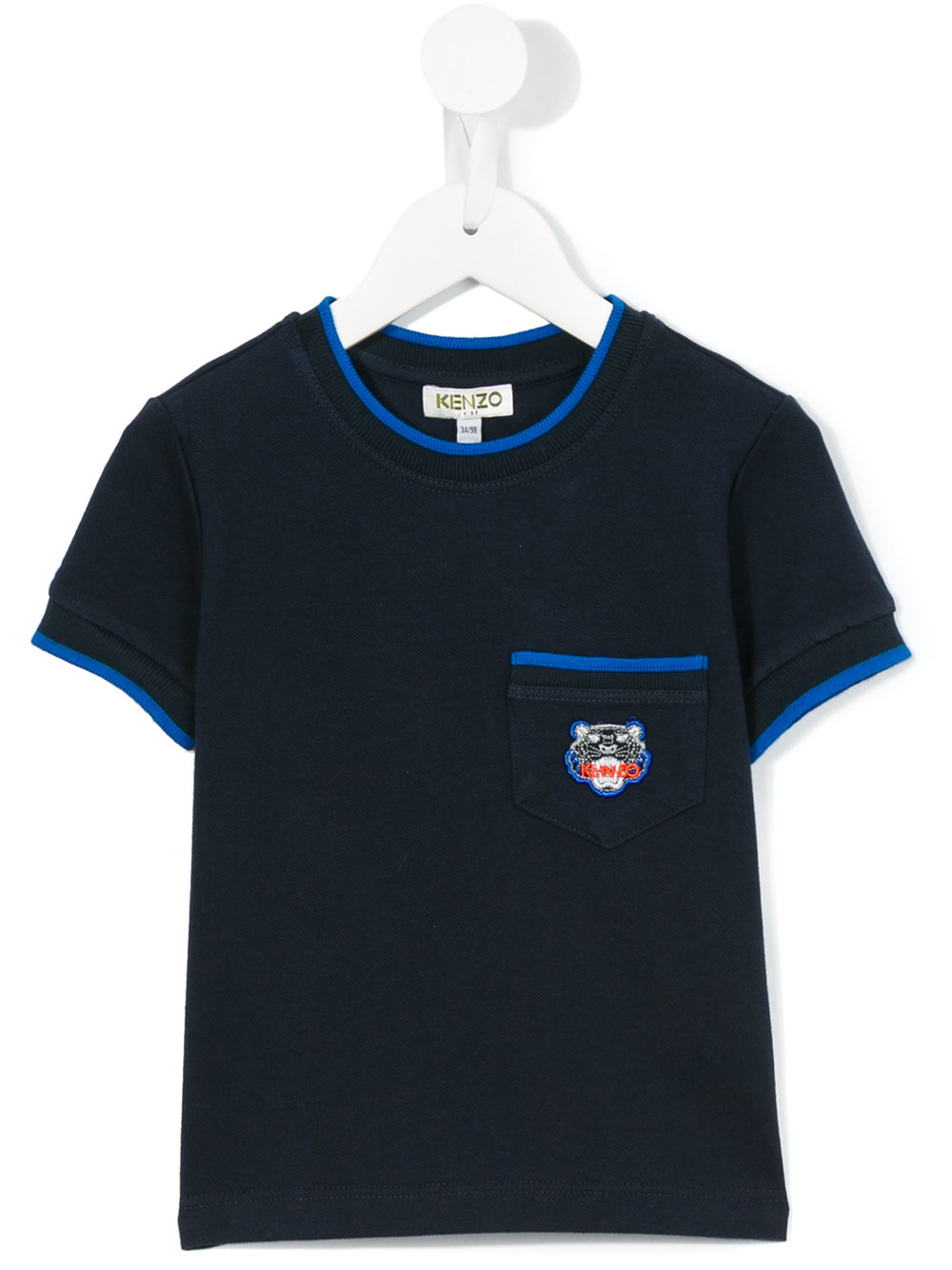 - For those who like their clothing with a ferocious bite, look no further than this tiger patch T-shirt from Kenzo Kids. This navy cotton Tiger patch T-shirt features a round neck, short sleeves and a chest pocket.