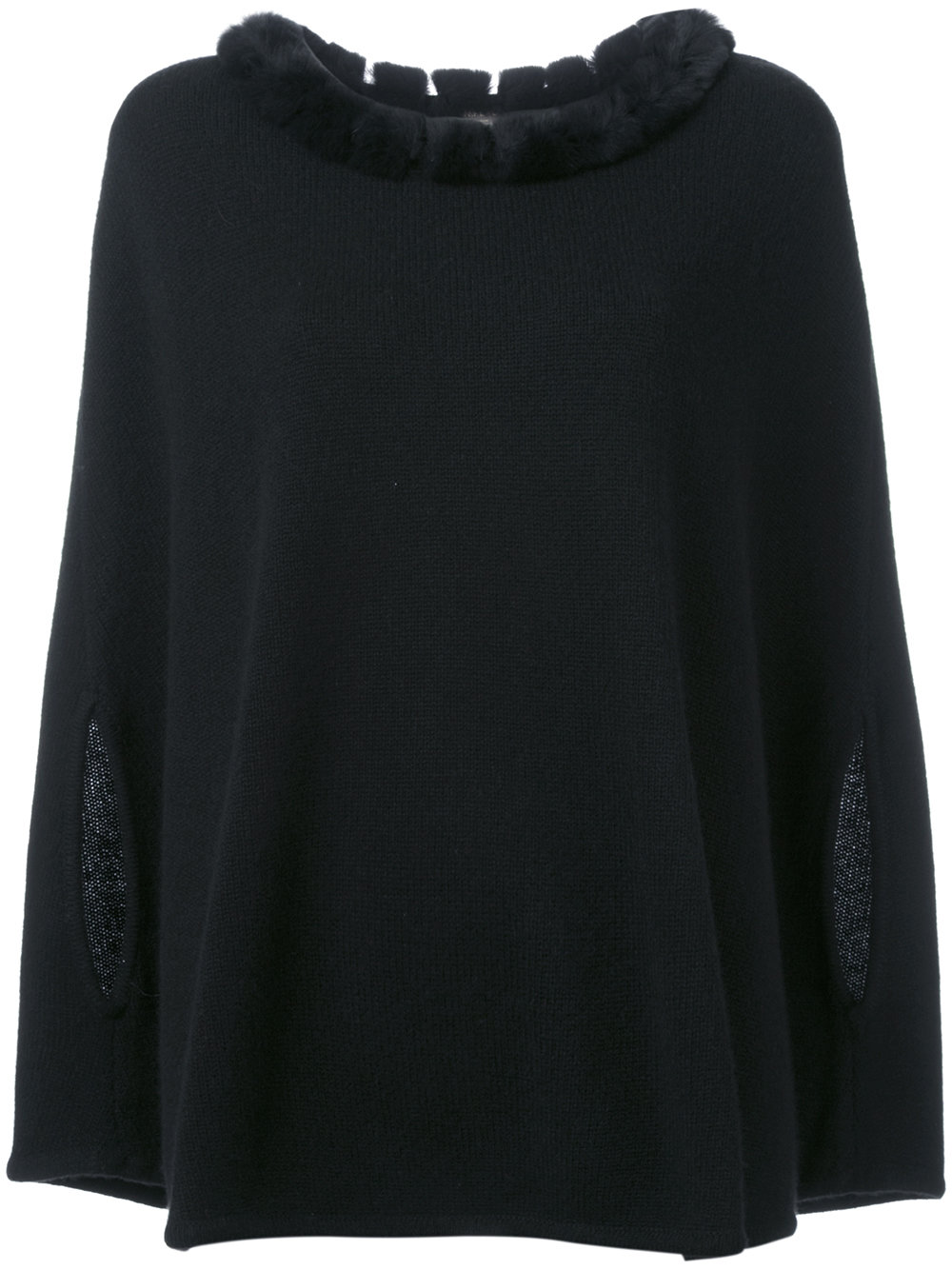 - N.Peal 黑色 兔皮毛与羊绒 皮草领斗篷式上衣。