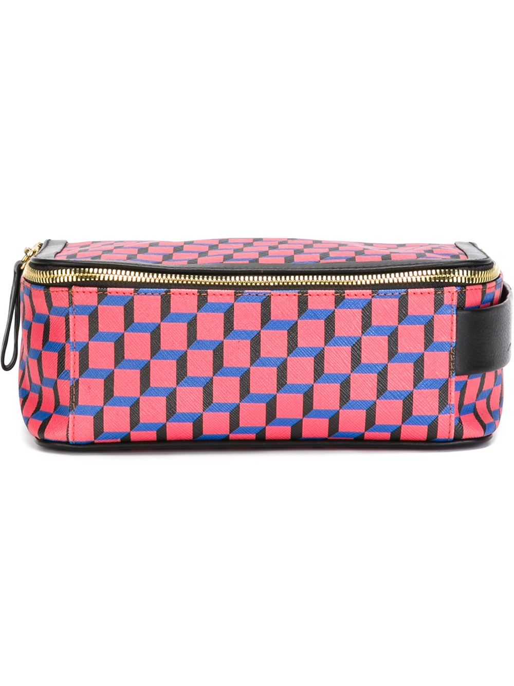 - Pierre Hardy 红色、黑色与蓝色 小牛皮 几何印花化妆包。