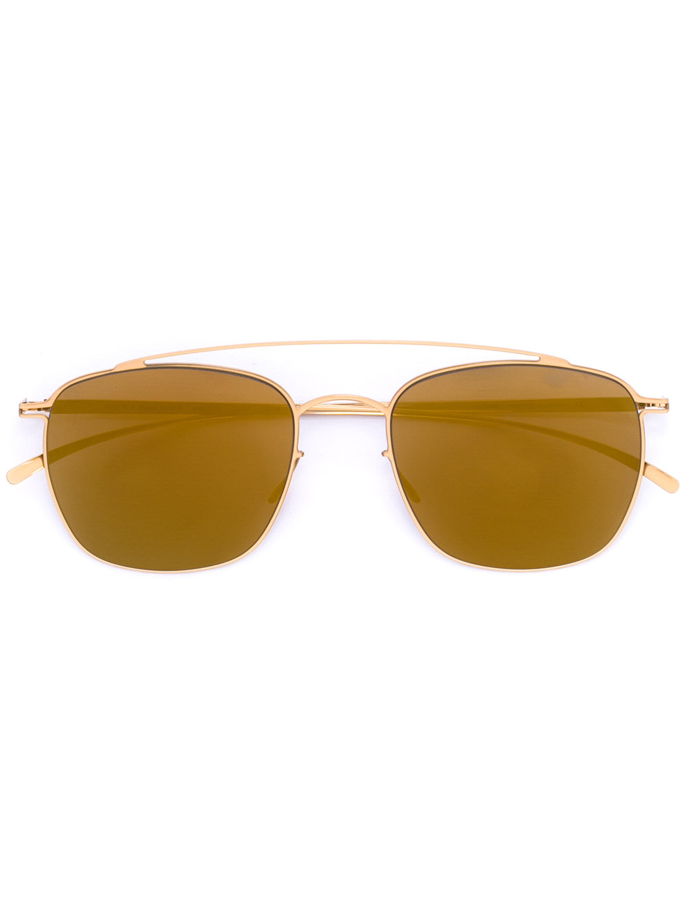 - Yellow metal Messe sunglasses from Mykita. This item comes with a protective case. This item is unisex.