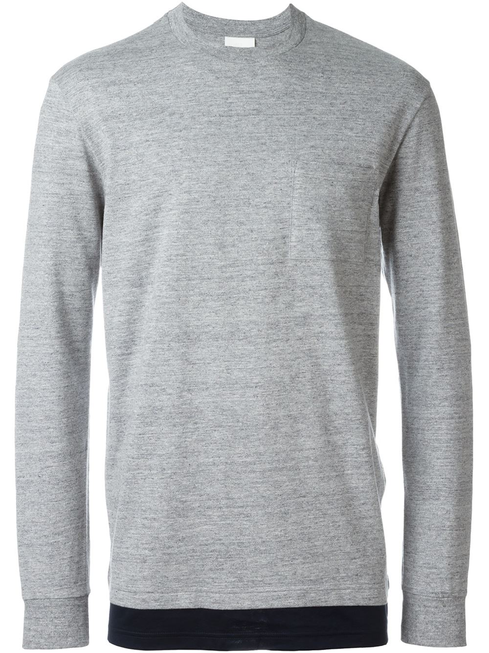 - Grey cotton longsleeved T-shirt from Nike featuring a round neck, a chest pocket, long sleeves, ribbed cuffs, a straight hem and a layered hem.