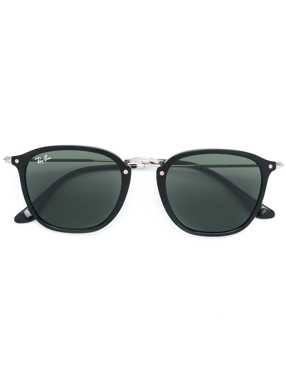 - Black acetate and titanium square frame sunglasses from Ray Ban.