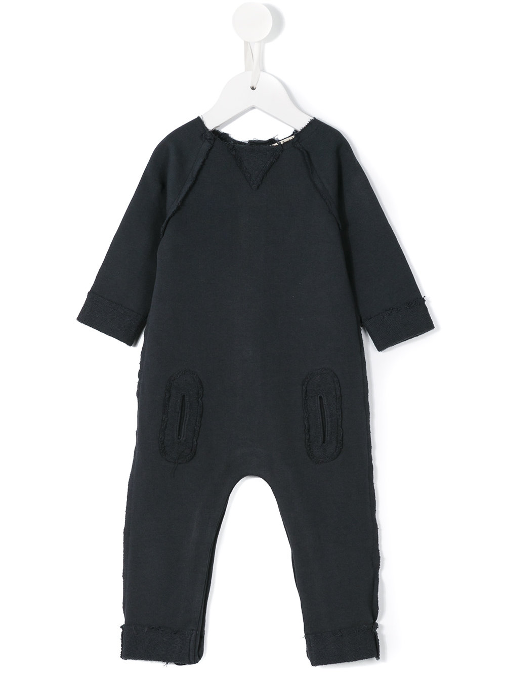 - Grey cotton raw edge romper from Andorine.