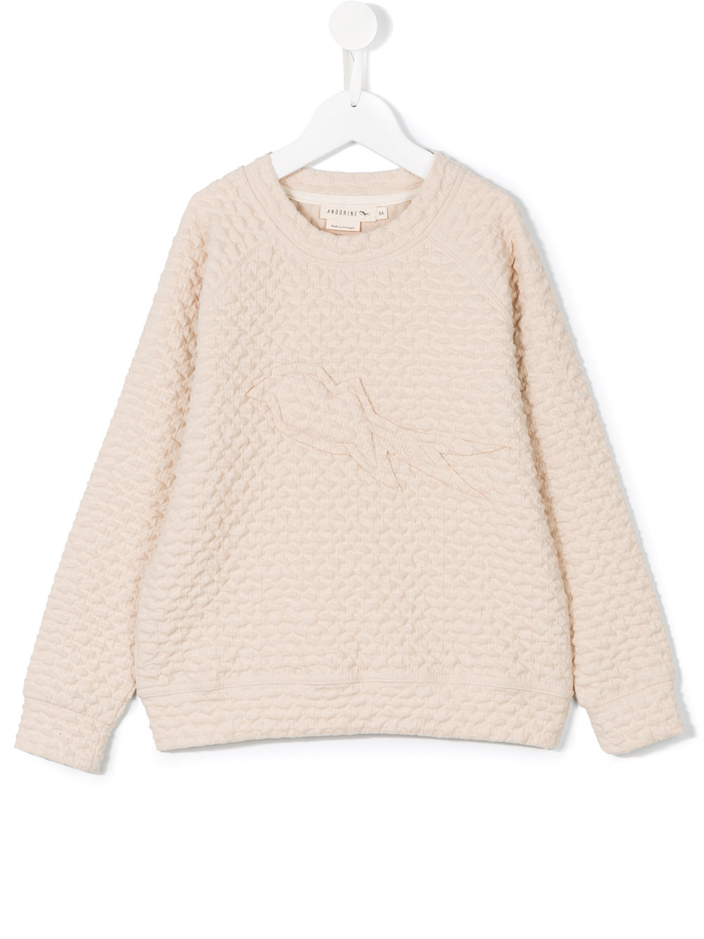- Andorine 米白色 弹性棉质 燕子贴花套头衫。