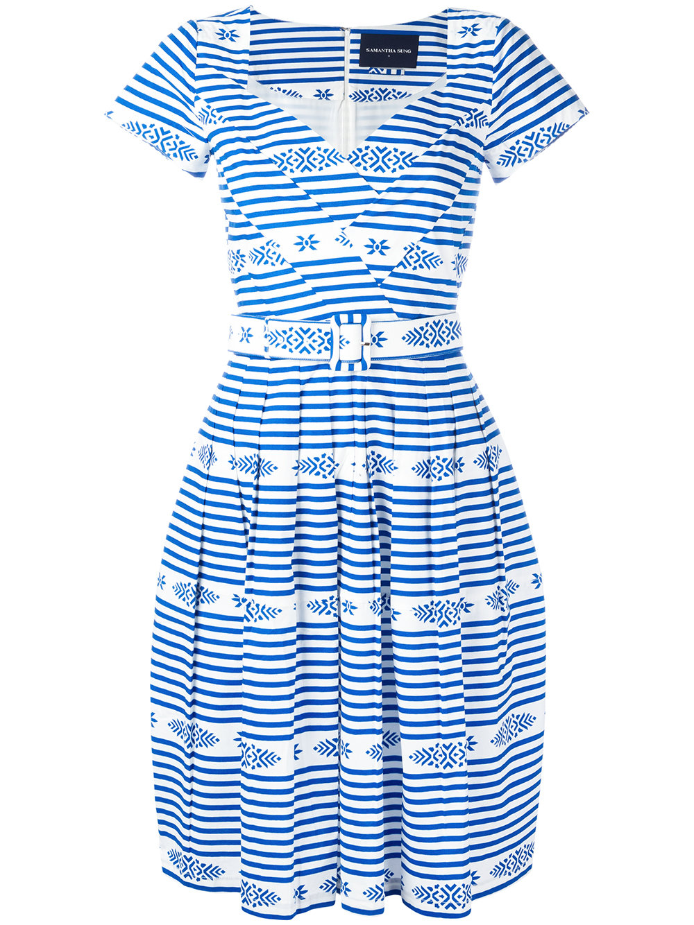 - Samantha Sung 白色与蓝色 棉质混纺 Yvette连衣裙。