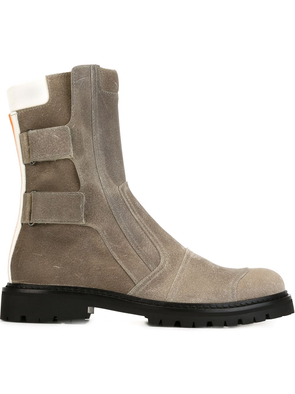 - Grey calf leather '161Y3693' boots from A.F.Vandevorst featuring an almond toe, a side zip fastening, contrasting panels and a flat rubber sole.
