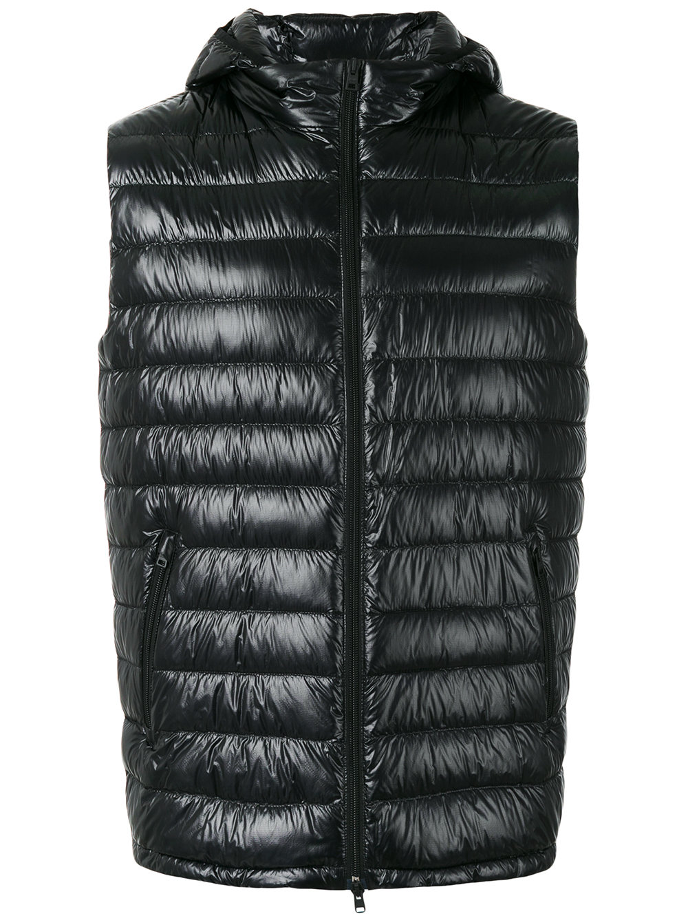 - Herno 黑色 羽绒 拉链连帽马甲。