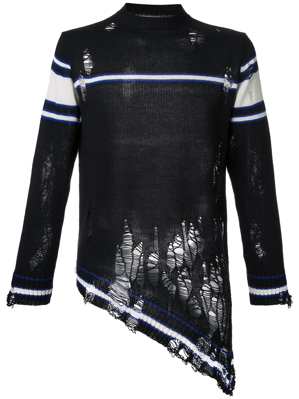 - Maison MIHARA YASUHIRO 深灰色 棉质混纺 仿旧效果套头衫。
