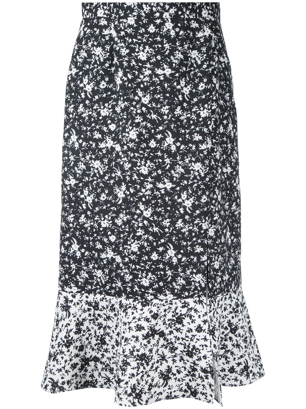 - Le Ciel Bleu 黑色 花卉印花中长半身裙。