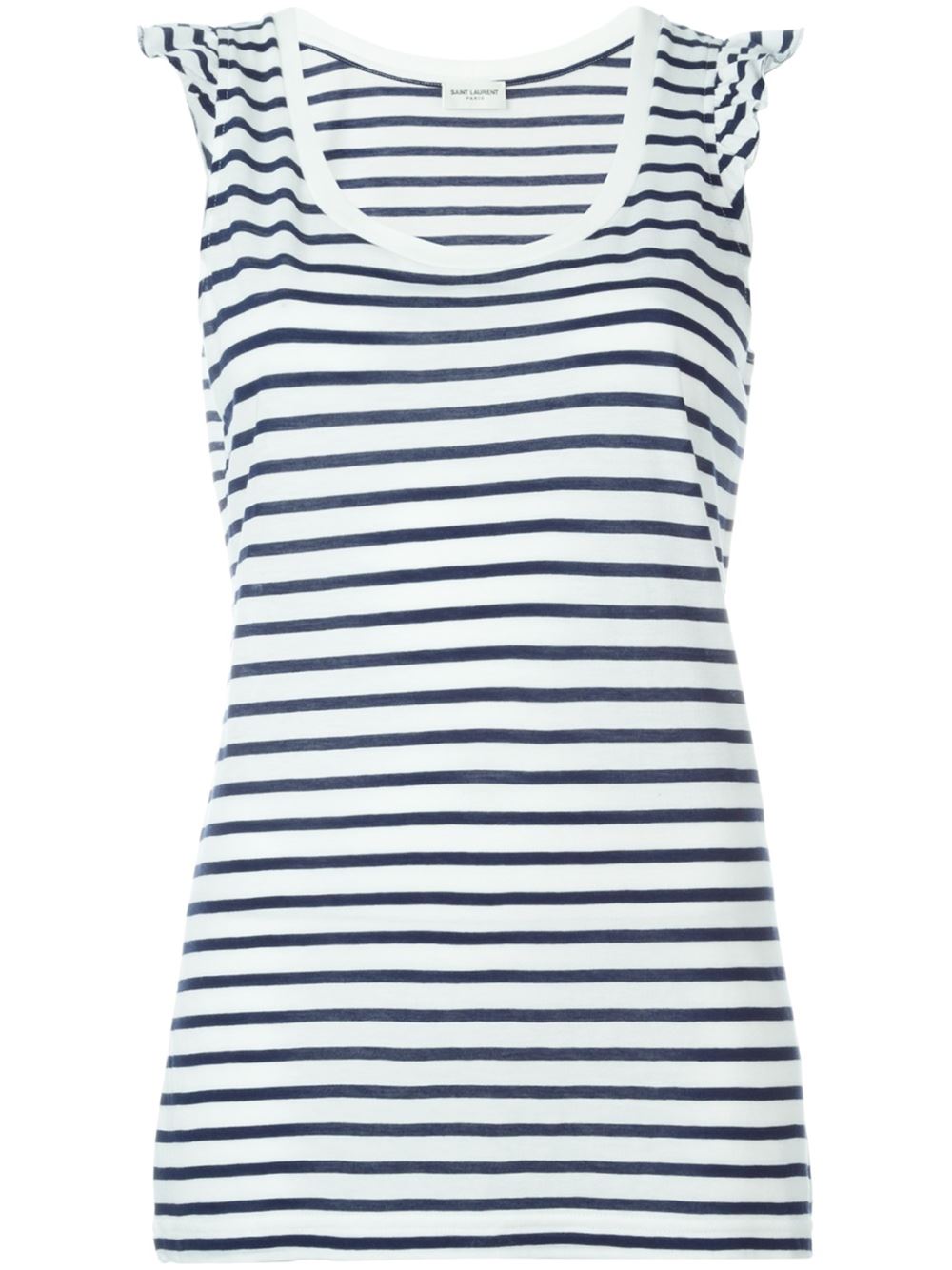 - Saint Laurent 白色与蓝色 棉质混纺 条纹坦克上衣。 圆领, 无袖设计, 横条纹, 平直下摆。