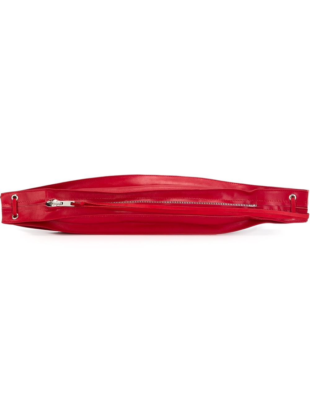 - Damir Doma 红色 小羊皮 'Accordion'手拿包。 顶置拉链。