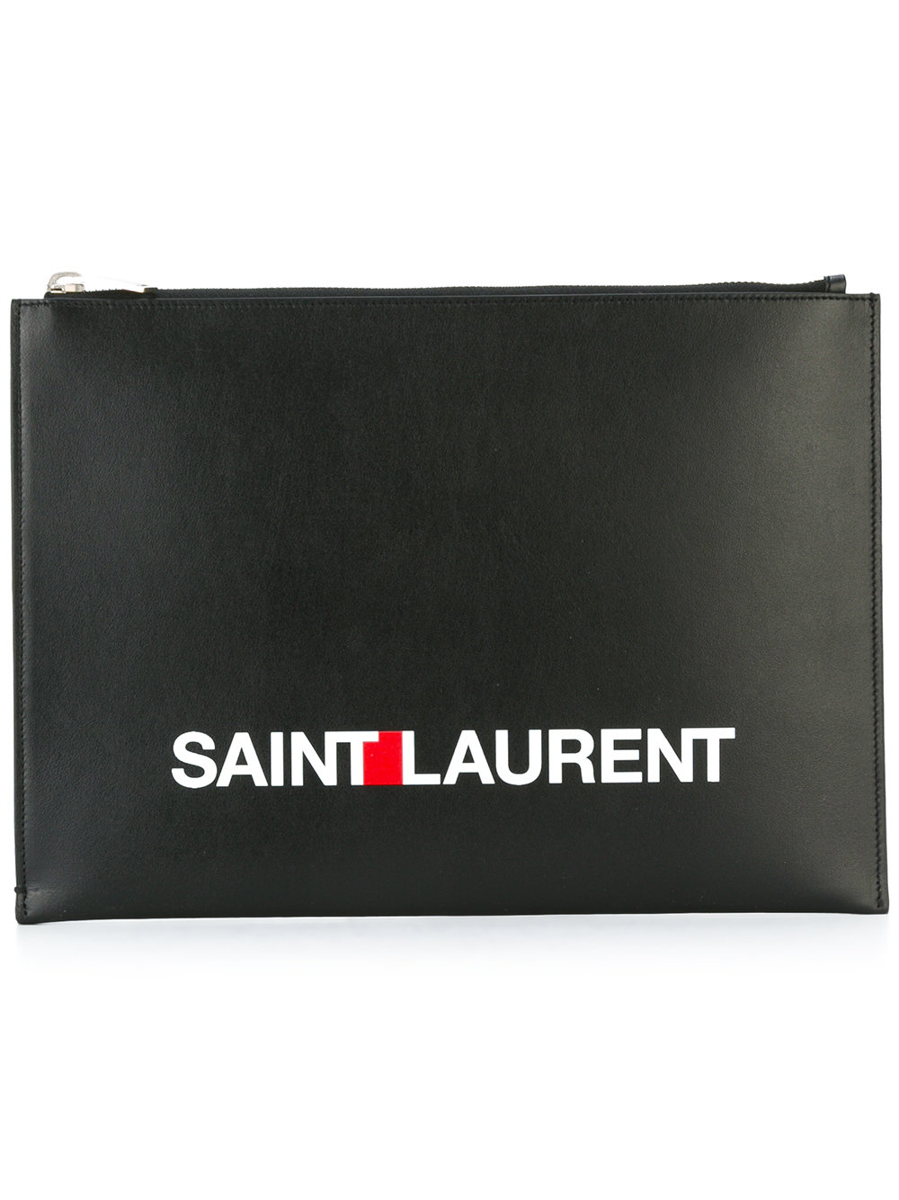 - Saint Laurent (圣罗兰) 黑色 小牛皮 logo印花手拿包。 长方形, 正面饰有印花标志, 顶置拉链, 全衬里, 内置标贴。