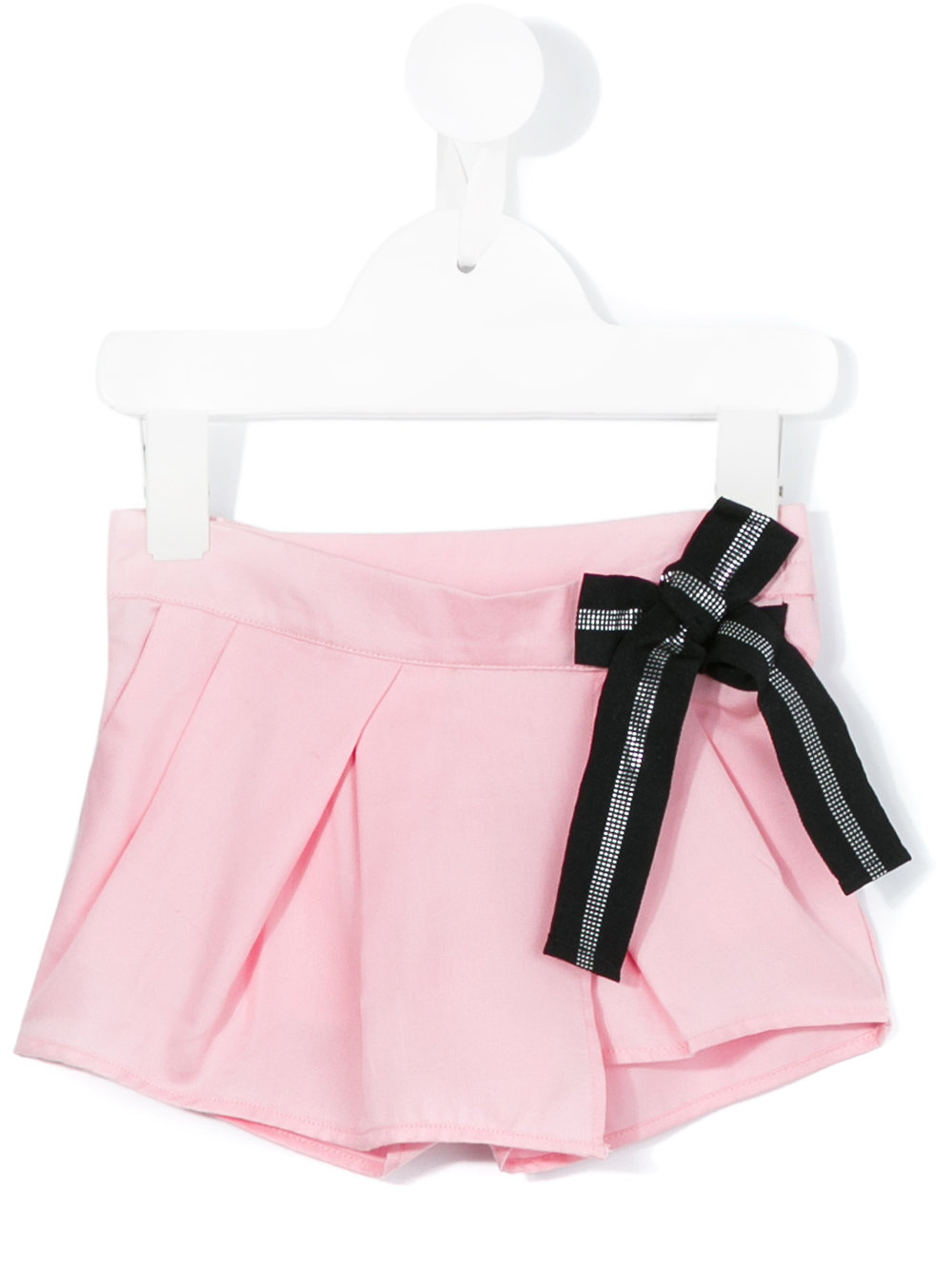 - Pink wrap front shorts from Karl Lagerfeld Kids featuring an elasticated trim and a bow detail.