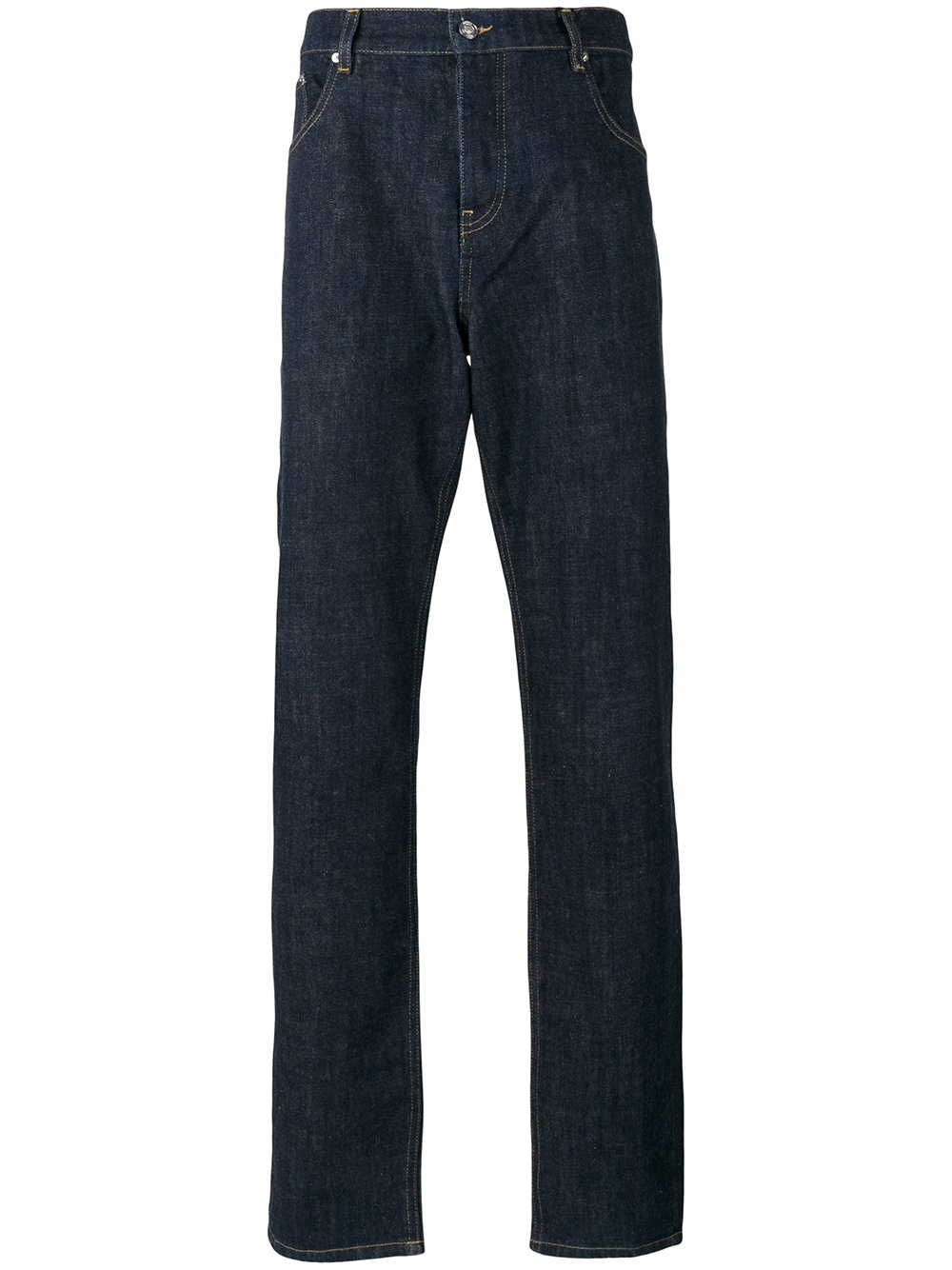 - Blue cotton straight-leg jeans from Kenzo featuring a front button fastening, belt loops and a five pocket design.