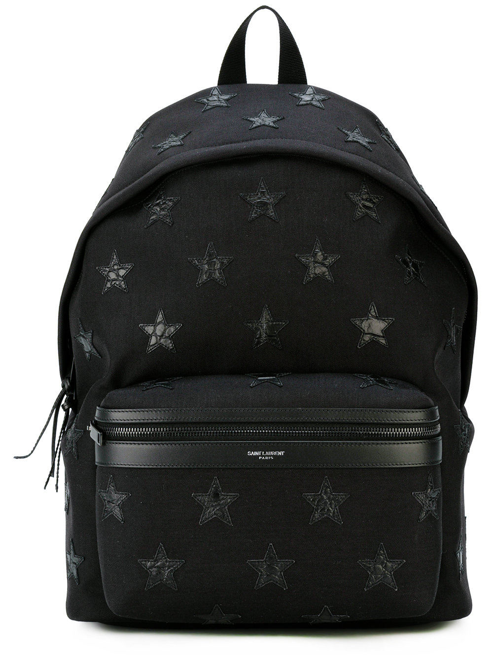 - Saint Laurent (圣罗兰) 黑色 星星贴花背包。 顶部有一个手柄, 正面拉链口袋, 内置拉链夹层, 肩带, 内置口袋。