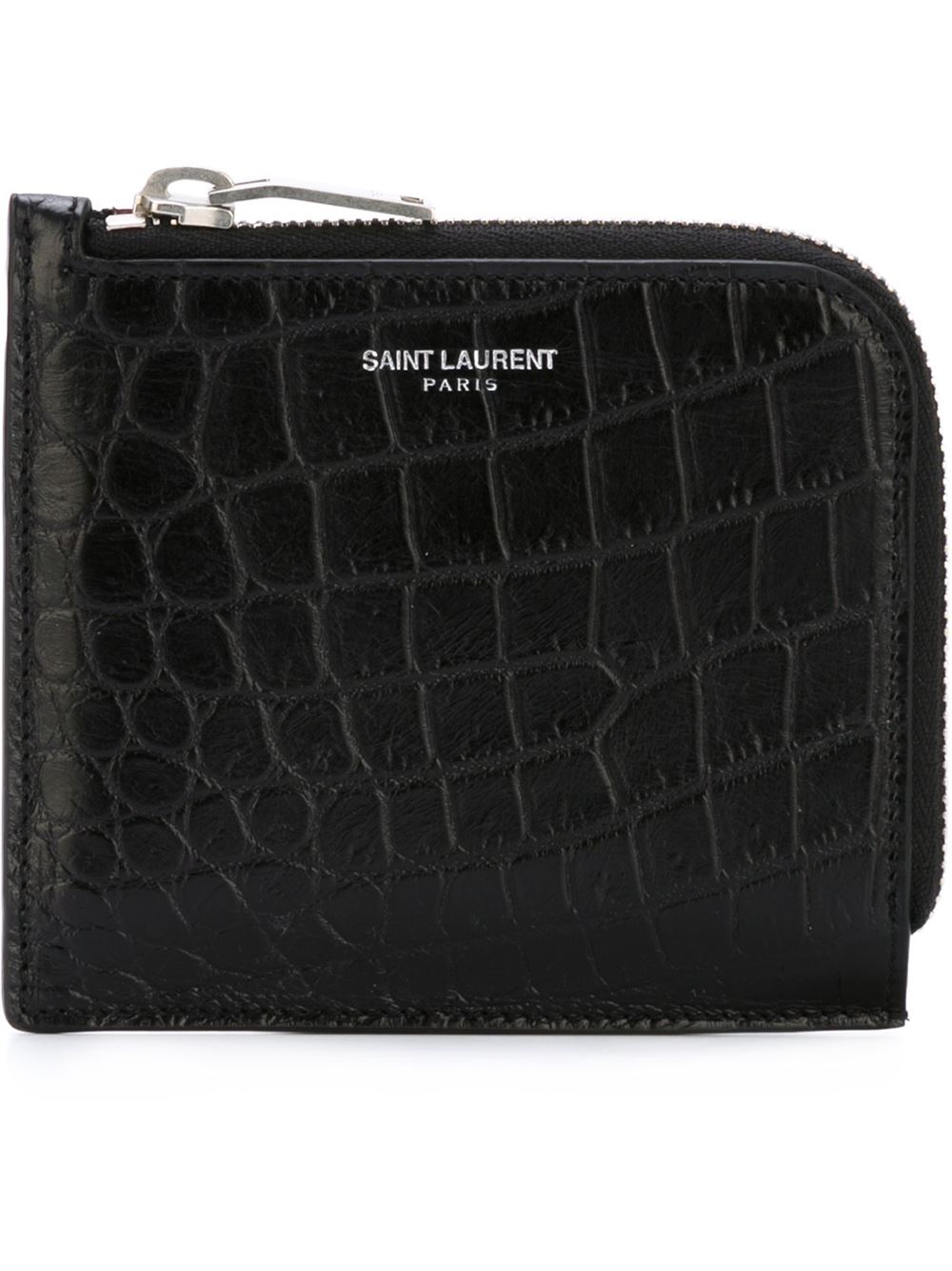 - Saint Laurent 黑色 小牛皮 'Paris'钱包。 顶部有拉链, 带浮雕及鳄鱼皮效果, 正中有品牌标记, 内置贴袋。