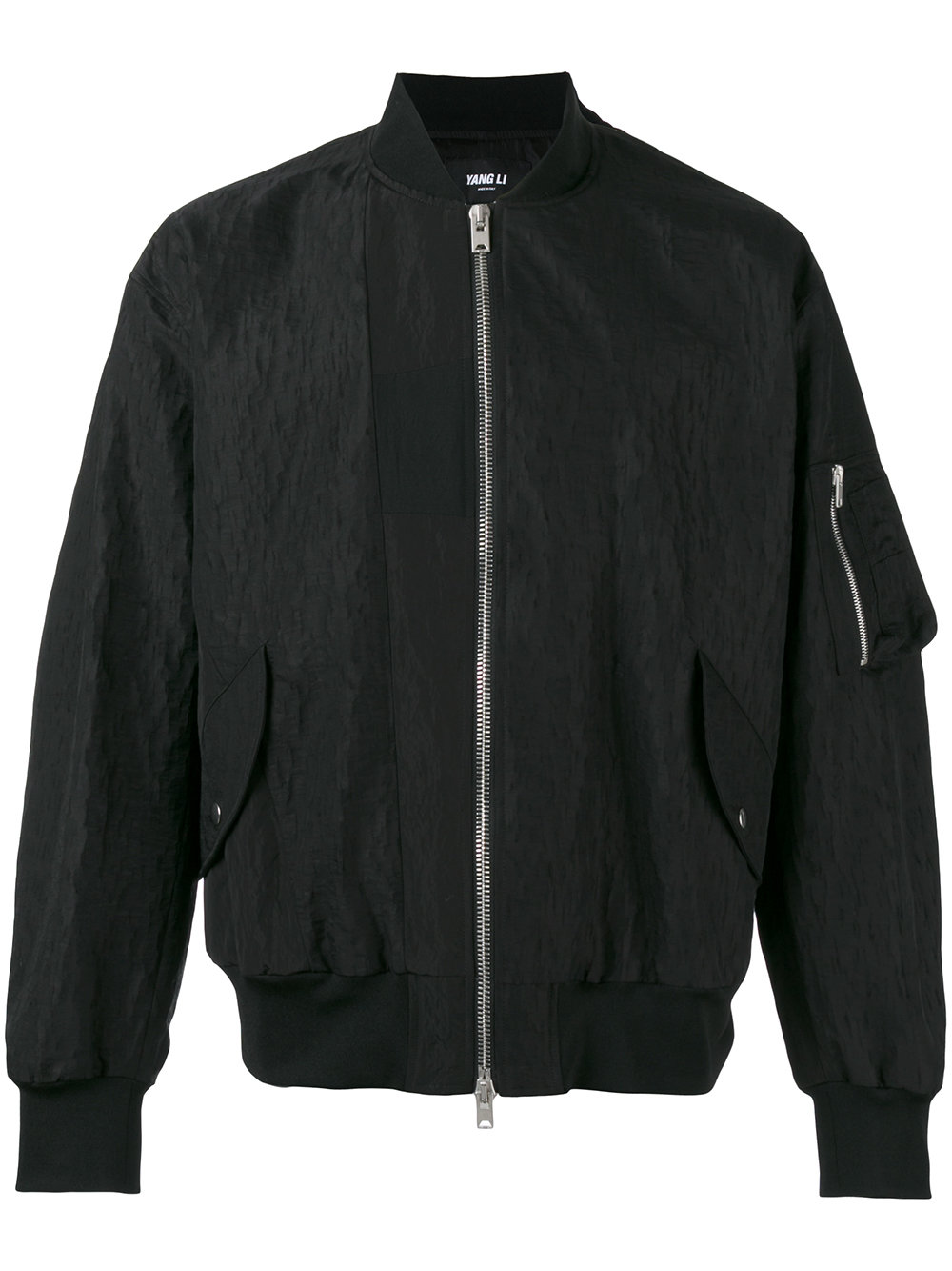 - Yang Li 黑色 全棉 宽松飞行员夹克。请注意,这件商品为缩皱设计。
