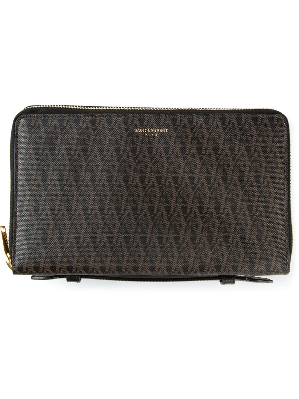 - Saint Laurent 黑色 'Monogram'钱包。 顶部有金色拉链, 内置多个卡槽。