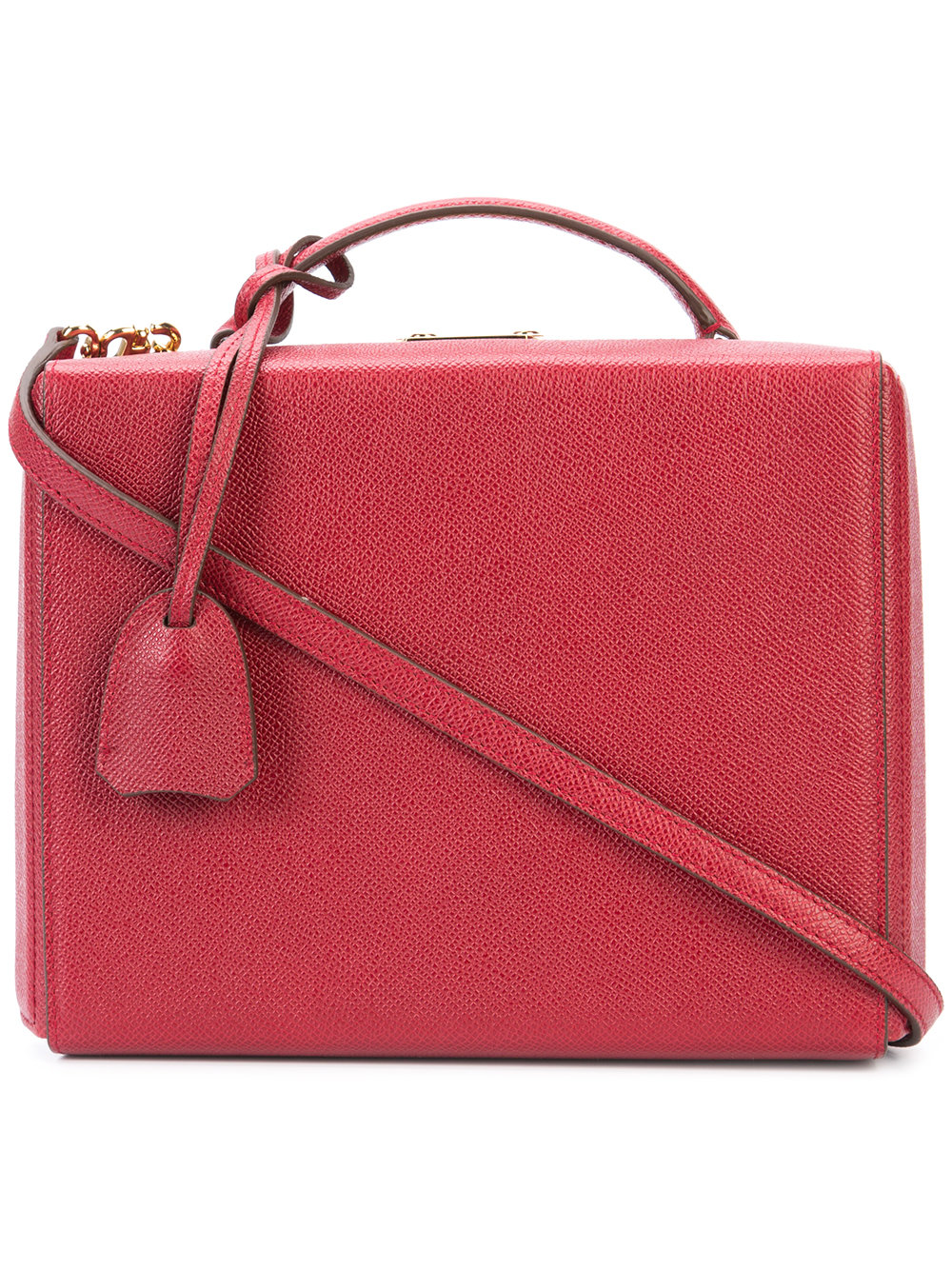 - Mark Cross 红色 牛皮 Trunk迷你单肩包。 顶部有一个手柄, 后面有皮质吊牌, 翻盖饰有插入式的摁扣, 内置拉链口袋。