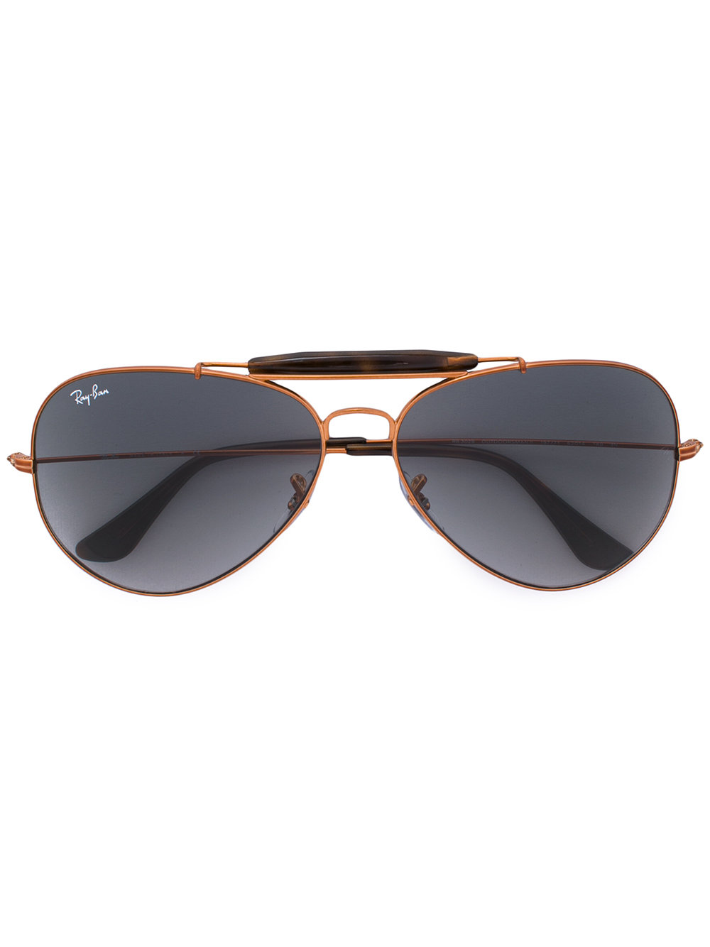 - Bronze toned metal Outdoorsman II sunglasses from Ray Ban. This item comes with a protective case.