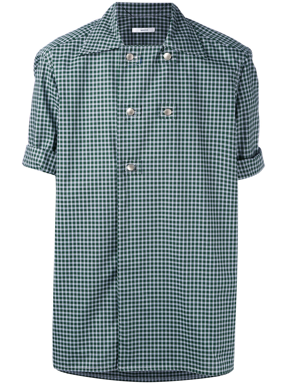 - Aganovich 绿色 全棉 双排扣衬衫。 正面有双排扣, 短袖。
