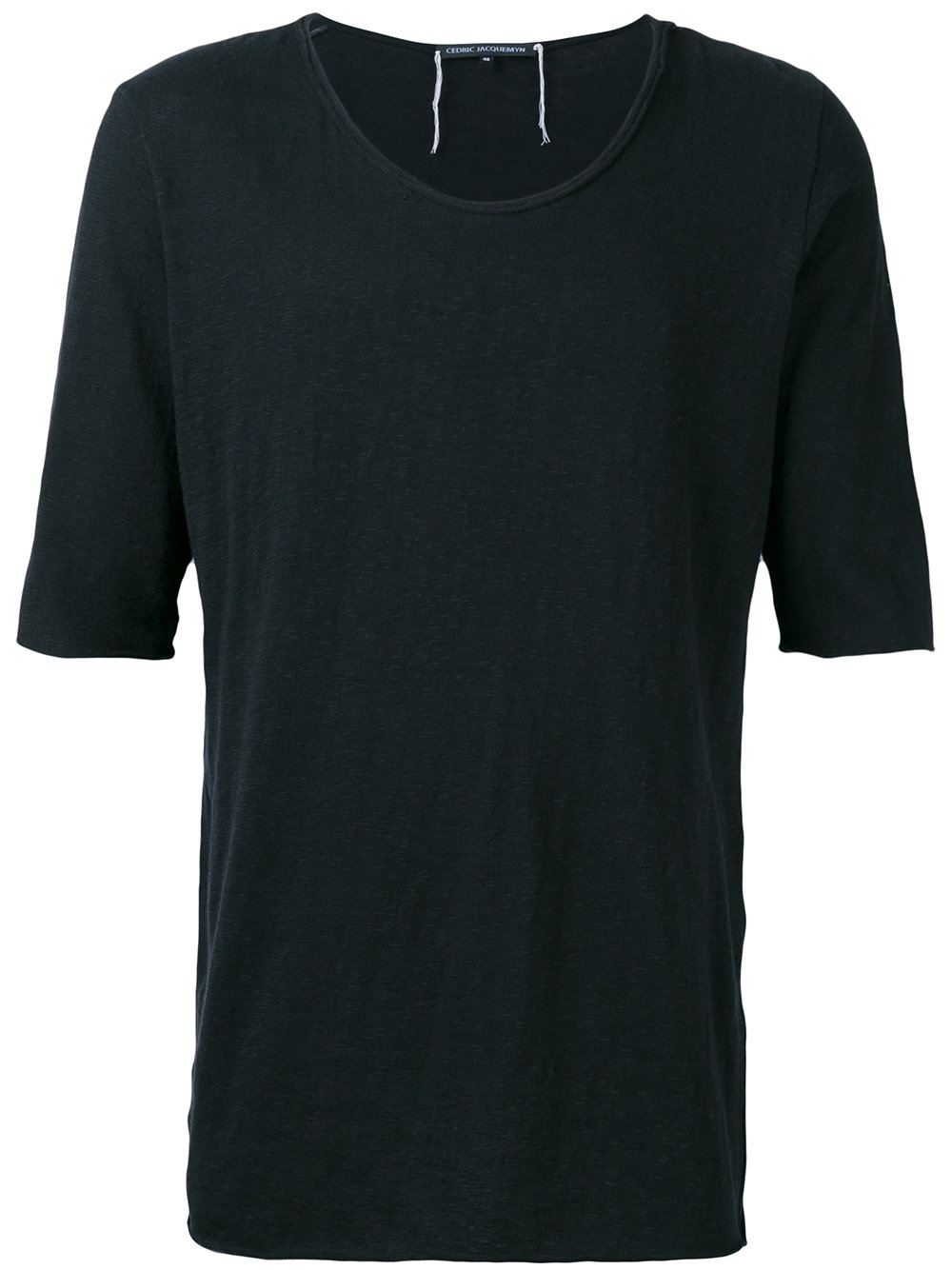 - Cedric Jacquemyn 黑色 全棉 磨损边T恤。