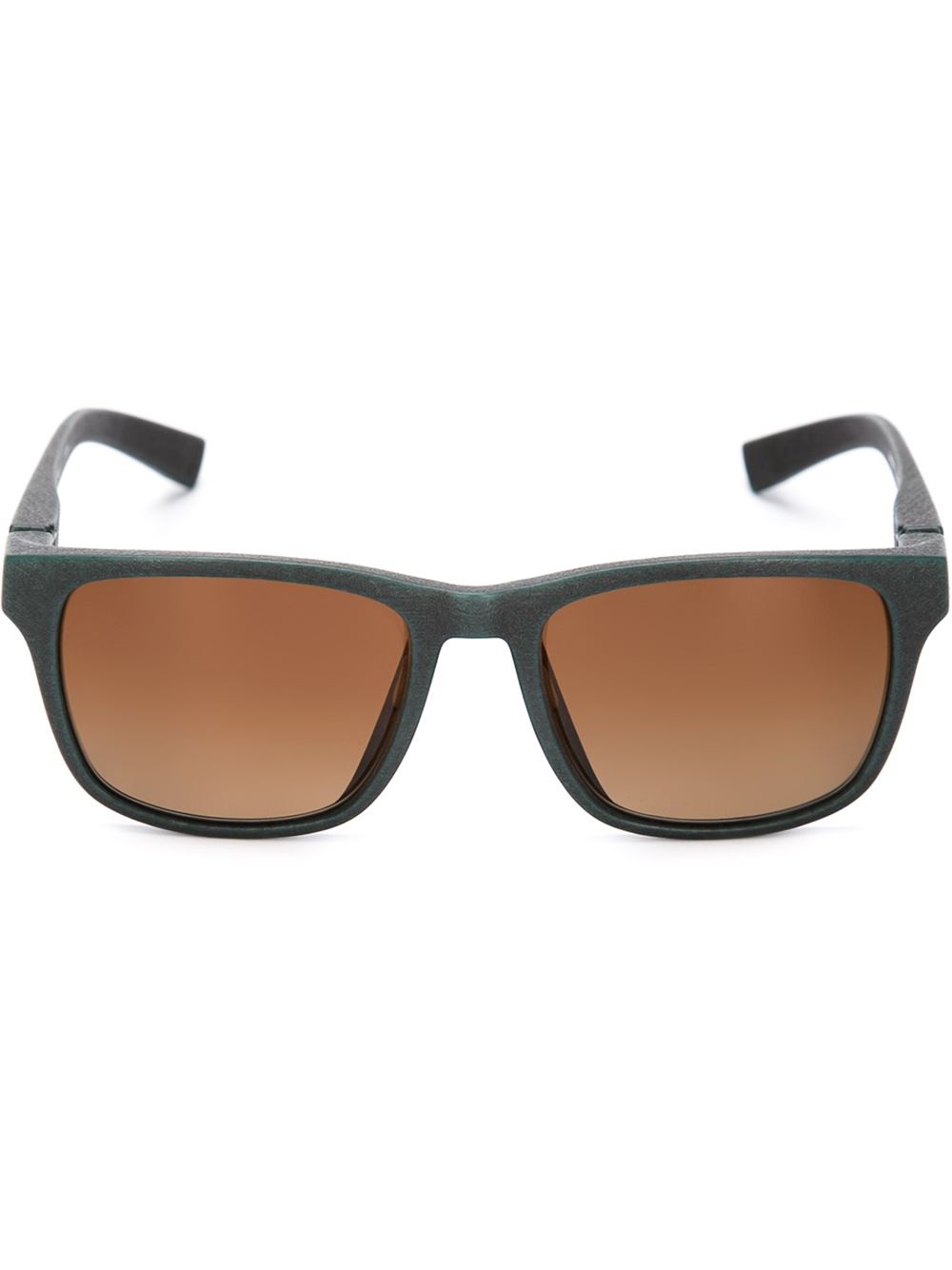 - Mykita 深灰色与褐色 'Piro'太阳眼镜。 方形镜框, 有色镜片, 尖角尾镜腿。请注意,这件商品附带保护壳。男女适用。