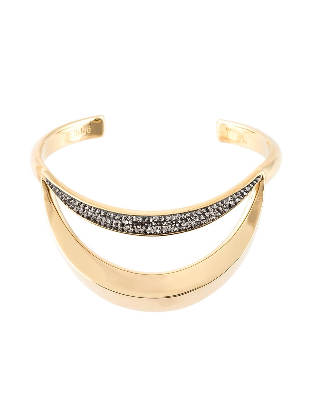- Chloé 黑色与金色 黄铜与施华洛世奇水晶 'Isalis'手镯。 金色五金配件, 挖剪细节, 密镶水晶。