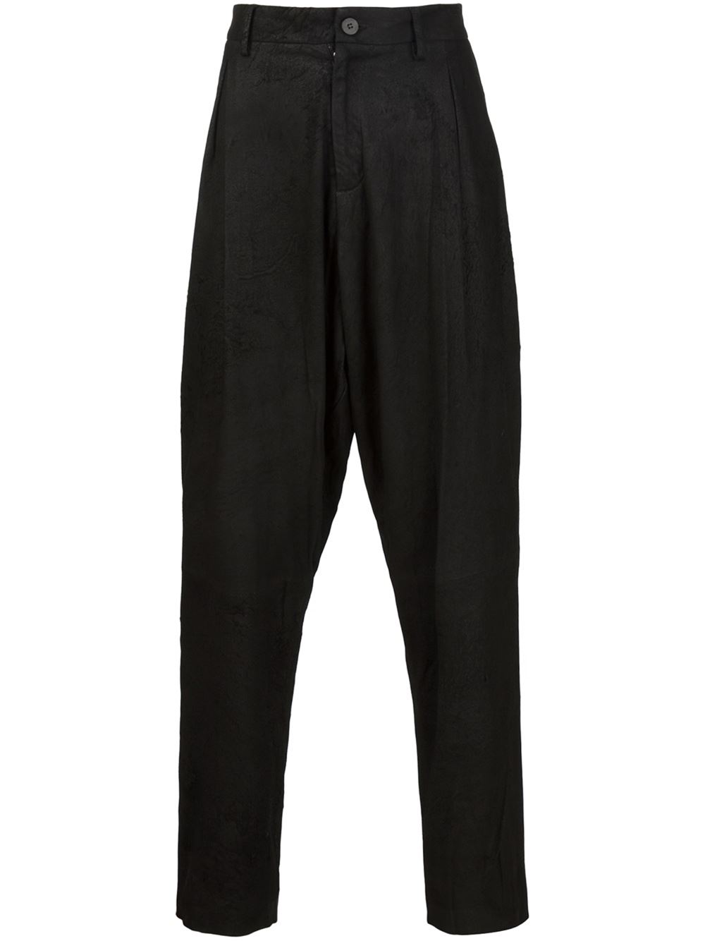 - Isabel Benenato 黑色 牛皮 锥腿裤。 纽扣与拉链开合, 侧有口袋, 锥形腿。