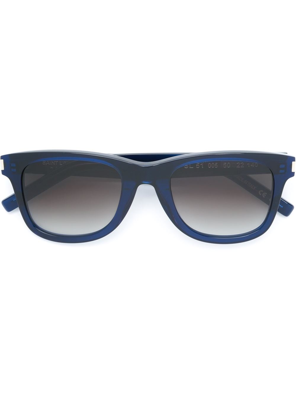 - Saint Laurent 深蓝色 醋酸纤维 方形框太阳眼睛。 渐色镜片。请注意,这件商品附带保护壳。
